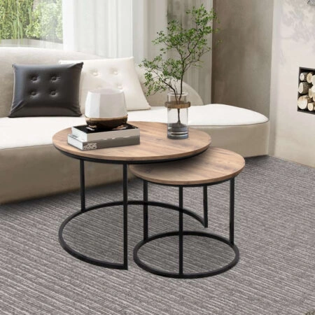 Τραπεζάκια σαλονιού Gary Megapap Mdf – μεταλλικό χρώμα καρυδί 65x65x44εκ. Τεχνικά χαρακτηριστικά: Χρώμα: καρυδί Το σετ περιλαμβάνει δύο στρογγυλά τραπεζάκια, ένα μικρότερο κι ένα μεγαλύτερο.…