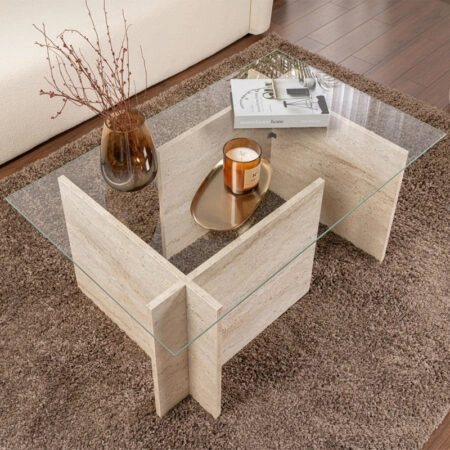 Τραπεζάκι σαλονιού Vetrino Megapap γυάλινο χρώμα travertine 105x65x40εκ.