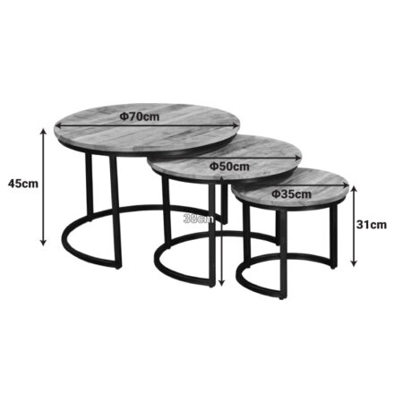 ΤΡΑΠΕΖΙA ΣΑΛΟΝΙΟΥ 2ΤΜΧ BALLI HM9996 ΣΤΡΟΓΓΥΛΑ ΜΕΤΑΛΛΙΚΑ ΜΑΥΡΑ Φ50 & Φ40 εκ.