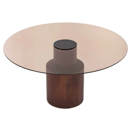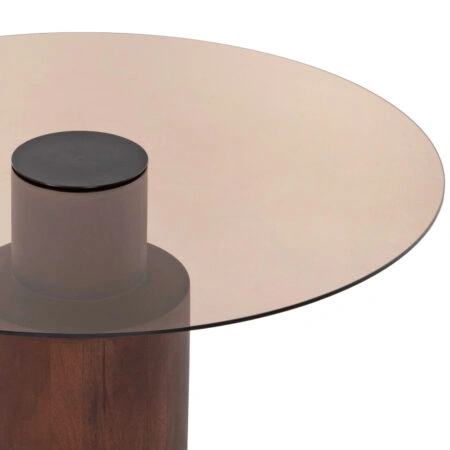 ΤΡΑΠΕΖΙ ΣΑΛΟΝΙΟΥ SUNNET HM9670 ΞΥΛΟ MANGO ΚΑΦΕ-ΓΥΑΛΙΝΟ TOΠ Φ80x41Y εκ.