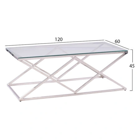 CONOR COFFEE TABLE ΑΣΗΜΙ ΔΙΑΦΑΝΟ 120x60xH45cm