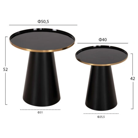 ΤΡΑΠΕΖΙA ΣΑΛΟΝΙΟΥ 2ΤΜΧ LORME HM9923 ΜΕΤΑΛΛΟ ΣΕ ΜΑΥΡΟ&ΧΡΥΣΟ Φ50 & Φ40 εκ.