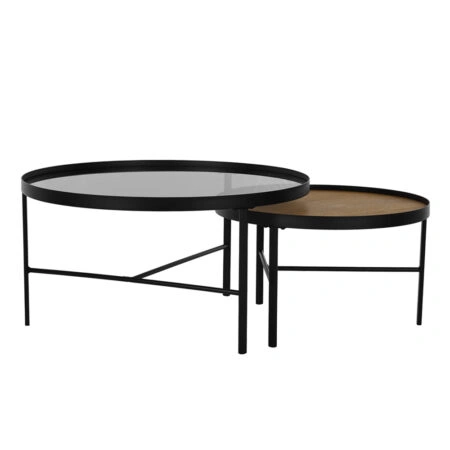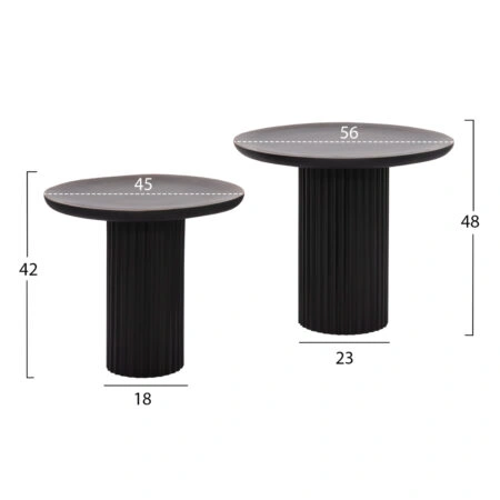 ACCORDO COFFEE TABLE SET 2ΤΕΜ ΦΥΣΙΚΟ ΦΙΜΕ ΜΑΥΡΟ 80x80xH42cm
