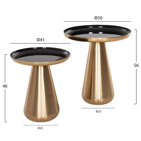 ΤΡΑΠΕΖΙA ΣΑΛΟΝΙΟΥ 2ΤΜΧ OLUF HM9921 ΜΕΤΑΛΛΟ ΕΜΑΓΙΕ-GLOSSY ΧΡΥΣΟ & ΜΑΥΡΟ Φ50 & Φ41