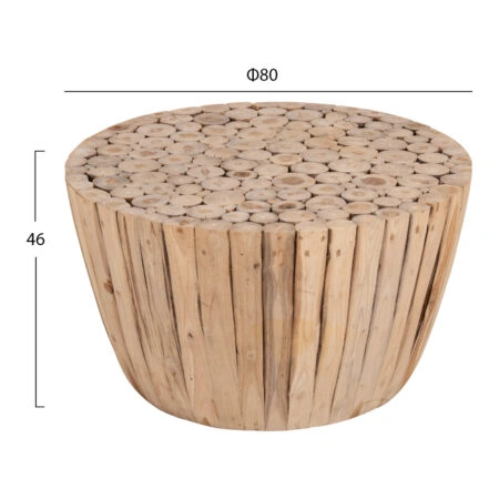 ΤΡΑΠΕΖΙ ΣΑΛΟΝΙΟΥ ΣΤΡΟΓΓΥΛΟ COOTER HM9864 ΚΛΑΔΙΑ TEAK-ΦΥΣΙΚΟ Φ60,5×46Υεκ.