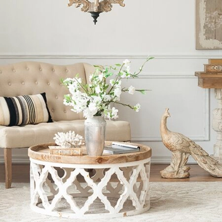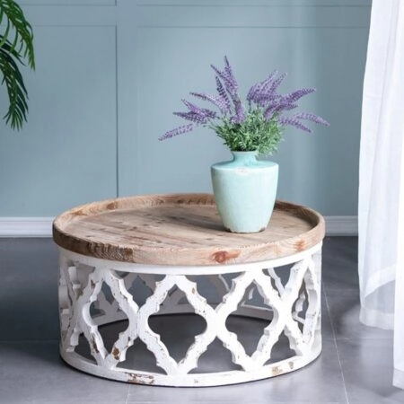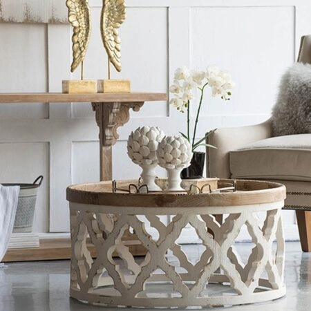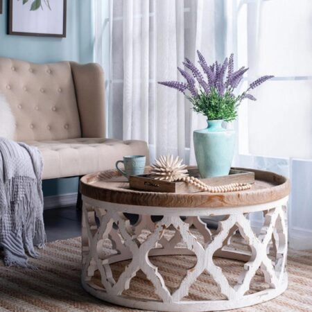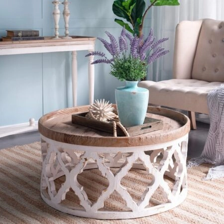 ΤΡΑΠΕΖΙ ΣΑΛΟΝΙΟΥ KREST HM9712 ΜΑΣΙΦ ΞΥΛΟ ΑΚΑΚΙΑΣ ΣΕ ΚΑΦΕ-ΤΡΑΒΕΡΤΙΝA Φ90×40Υεκ.
