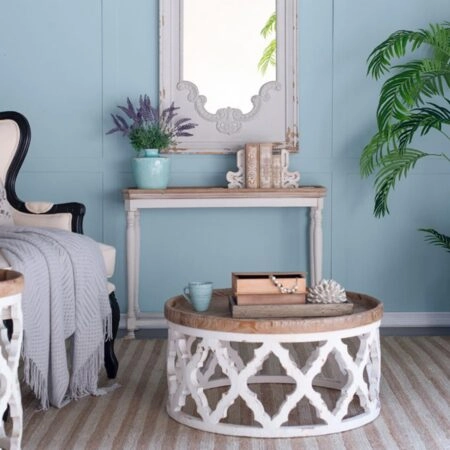 ΤΡΑΠΕΖΙA ΣΑΛΟΝΙΟΥ 2ΤΜΧ FORMEL HM11915 ΑΚΑΚΙΑ ΣΕ ΦΥΣΙΚΟ-ΛΕΥΚΟ ΜΑΡΜΑΡΟ Φ100 & Φ80 εκ.