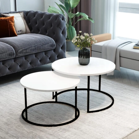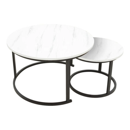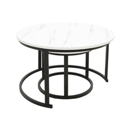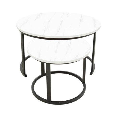 Τραπέζια σαλονιού Solme σετ 2τεμ λευκό μελαμίνης-μαύρο μέταλλο