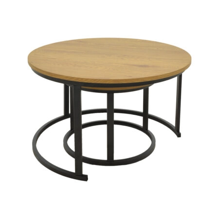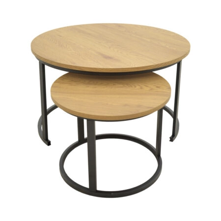 Τραπέζια σαλονιού Solme σετ 2τεμ φυσικό μελαμίνης-μαύρο μέταλλο