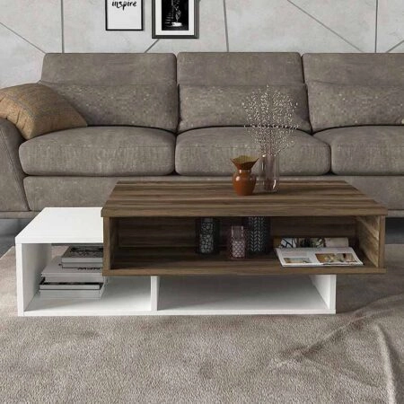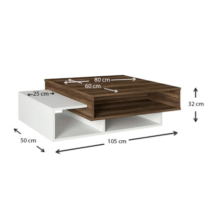 Τραπεζάκι σαλονιού Tab από μελαμίνη χρώμα λευκό – καρυδί 105x60x32εκ.