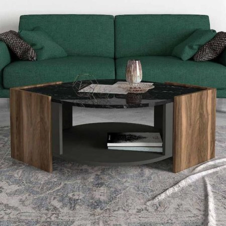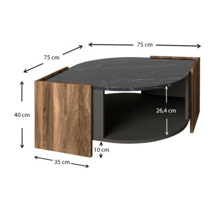Τραπεζάκι σαλονιού Marbel από μελαμίνη χρώμα καρυδί – μαύρο εφέ μαρμάρου 75x75x40εκ.