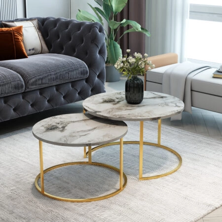 ΤΡΑΠΕΖΙ ΣΑΛΟΝΙΟΥ 2ΤΜΧ TALOS HM18140.04 ΚΕΡΑΜΙΚΟ TOP ΜΕ ΟΨΗ ΓΚΡΙ ΜΑΡΜΑΡΟΥ Φ70×45,5Υ