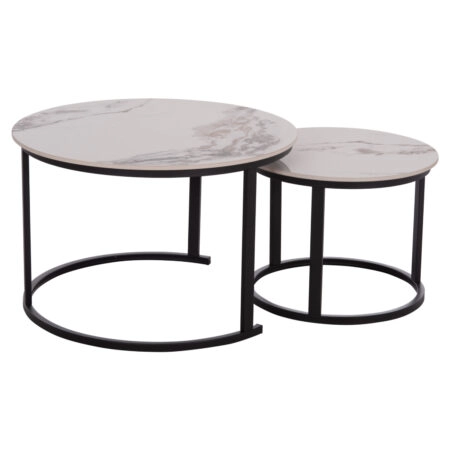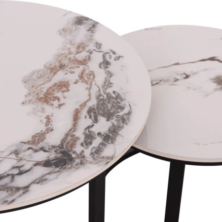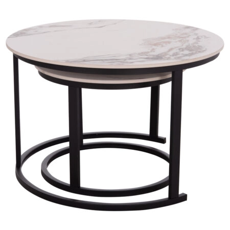 ΤΡΑΠΕΖΙ ΣΑΛΟΝΙΟΥ 2ΤΜΧ TALOS HM18140.03 ΛΕΥΚΟ ΜΕ ΚΑΦΕ ΝΕΡΑ ΚΕΡΑΜΙΚΟ TOP Φ70×45,5Υ