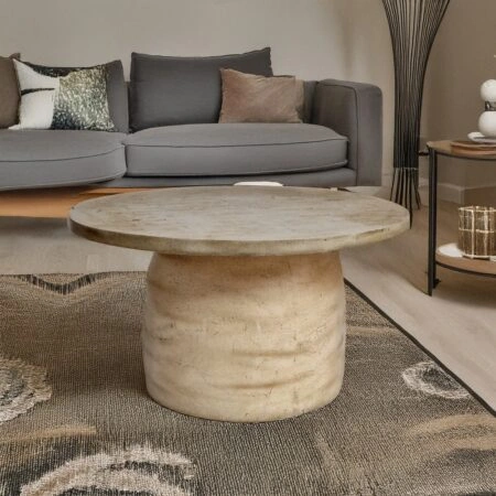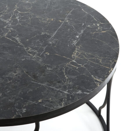 Τραπέζι σαλονιού μεταλλικό Φ75×45 με αύρο σκελετό και εφέ μαρμάρου