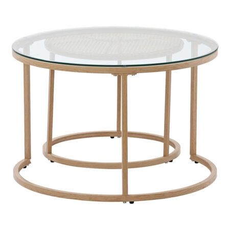 Βοηθητικά τραπεζάκια σετ 2τεμ Sieni Inart χρυσό μέταλλο-γυαλί καθρέπτη