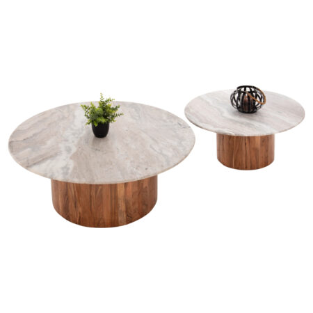 ΤΡΑΠΕΖΙA ΣΑΛΟΝΙΟΥ 2ΤΜΧ FORMEL HM11915 ΑΚΑΚΙΑ ΣΕ ΦΥΣΙΚΟ-ΛΕΥΚΟ ΜΑΡΜΑΡΟ Φ100 & Φ80 εκ.