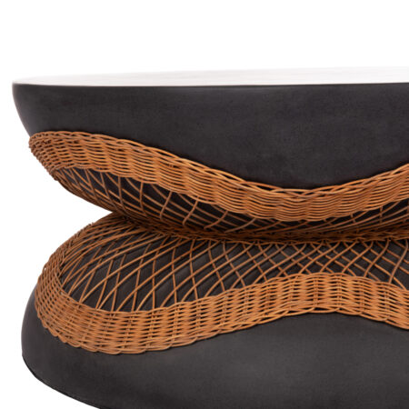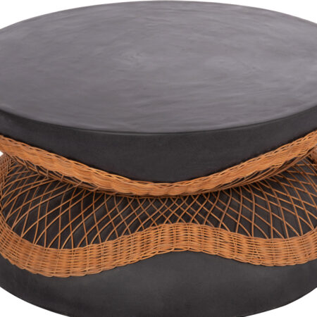 ΤΡΑΠΕΖΙ ΣΑΛΟΝΙΟΥ ΣΤΡΟΓΓΥΛΟ ANNA HM18157.01 FIBER CEMENT ΣΕ ΜΑΥΡΟ-ΦΥΣΙΚΟ RATTAN–Φ92×44.5Υεκ.