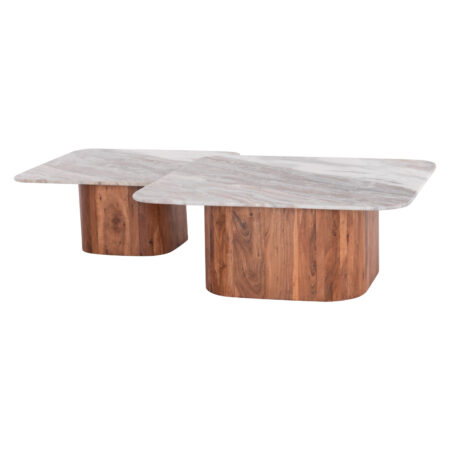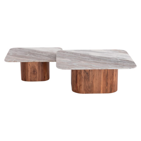 ΣΕΤ 2ΤΜΧ ΤΡΑΠΕΖΙΑ ΣΑΛΟΝΙΟΥ VOLTI HM21079 ΓΚΡΙ ΜΑΡΜΑΡΟ-ΞΥΛΟ ΑΚΑΚΙΑΣ
