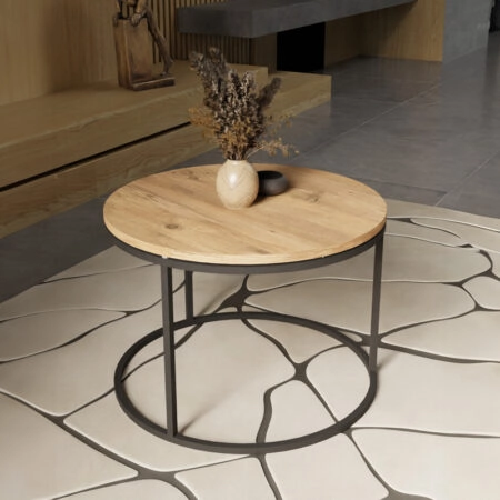 Τραπέζι σαλονιού Drion oak μελαμίνης-μαύρο μέταλλο Φ60×40εκ