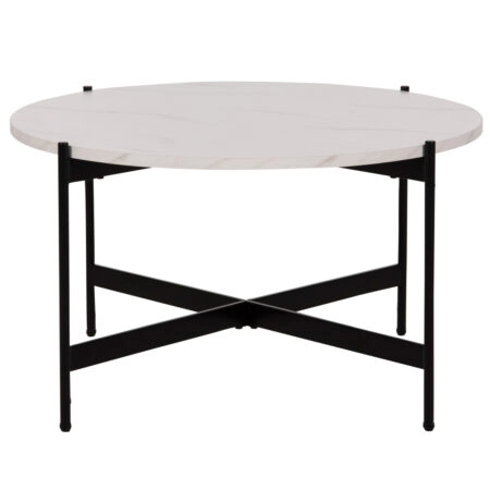 ΤΡΑΠΕΖΙ ΣΑΛΟΝΙΟΥ HM9588.05 MDF ΛΕΥΚΟ ΜΑΡΜΑΡΟ-ΜΑΥΡΗ ΜΕΤΑΛΛΙΚΗ ΒΑΣΗ Φ80×45Υεκ.