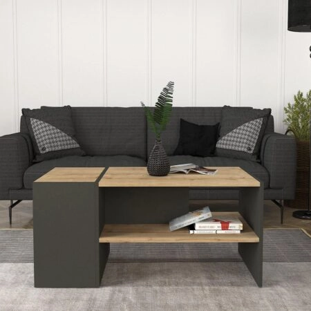 Τραπεζάκι Σαλονιού LEROS Φυσικό/Ανθρακί Μοριοσανίδα/Μελαμίνη 110x60x45cm