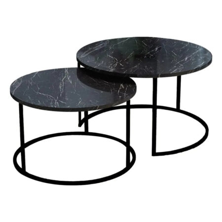Τραπέζια σαλονιού Solme 2τεμ μαύρο εφε μαρμάρου με μαύρα μεταλλικά πόδια