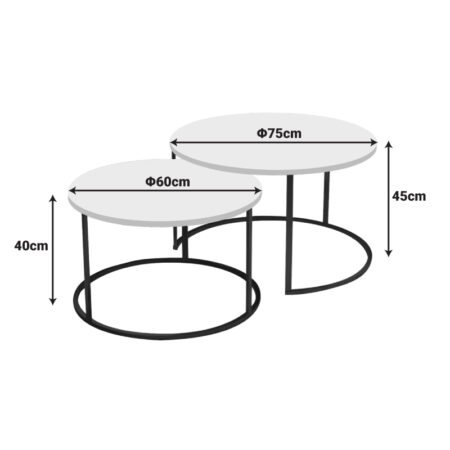Τραπέζια σαλονιού Solme 2τεμ λευκή όψη μαρμάρου με μαύρα μεταλλικά πόδια