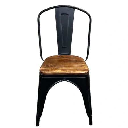 Καρέκλα Βιομηχανικού Τύπου Vintage TOLIKO II Μαύρο Ματ/Καφέ Μέταλλο/Ξύλο 45x53x85cm