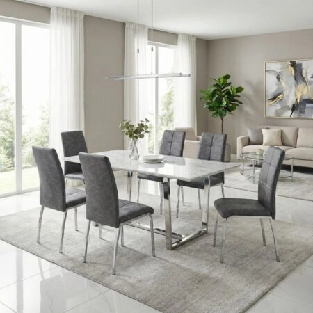 Καρέκλα τραπεζαρίας Alma Megapap γκρι PU – μεταλλικό πόδι χρωμίου 42x53x97εκ.