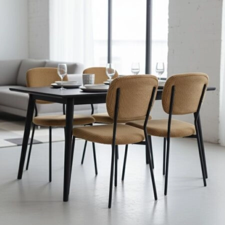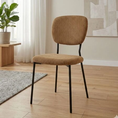Καρέκλα τραπεζαρίας Kevin Megapap μουσταρδί ύφασμα – μεταλλικό μαύρο πόδι 48x51x87εκ. Η καρέκλα Kevin θα φέρει μία αίσθηση εκλεπτυσμένης κομψότητας στον χώρο σας. Το πλούσιο κοτλέ ύφασμά της…