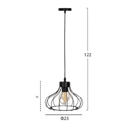 Κρεμαστό Φωτιστικό Μονόφωτο Μαύρο Ε27 Φ22x120cm