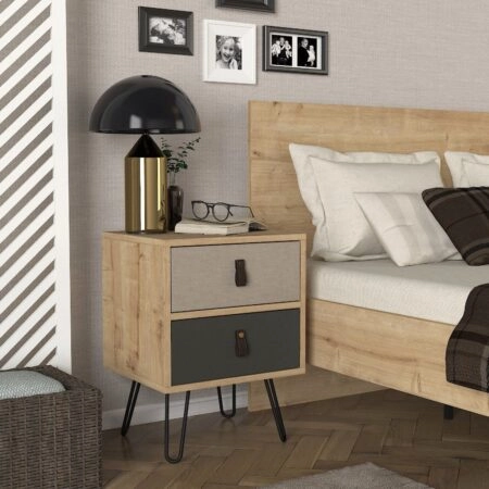 Κομοδίνο TILOS Φυσικό/Ανθρακί/Ανοιχτό Καφέ 45x39x60cm
