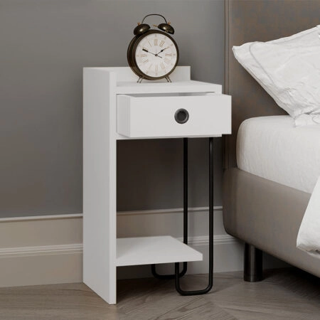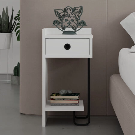 Κομοδίνο μελαμίνης Glynn χρώμα λευκό 50,2×44,6×60εκ.