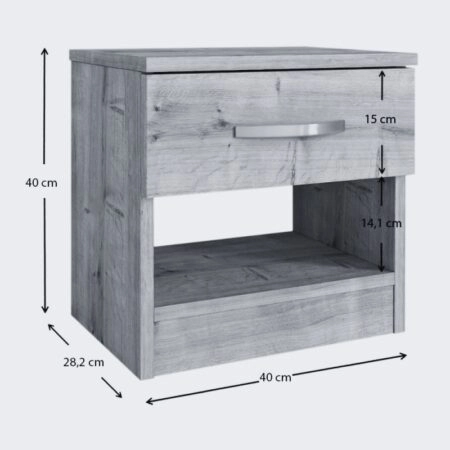 Κομοδίνο μελαμίνης Lube χρώμα ανθρακί 40×28,2×40εκ.