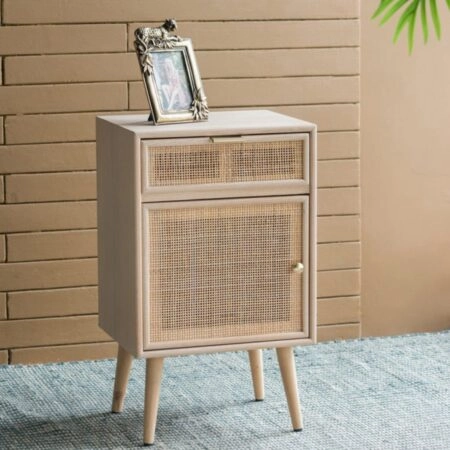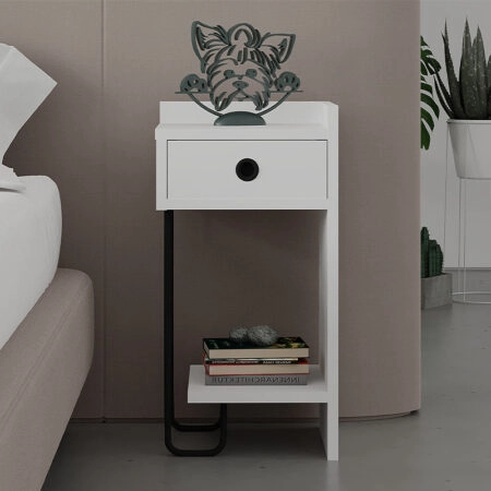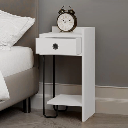 Κομοδίνο GANIRU Λευκό Μοριοσανίδα/Ξύλο 45x30x60cm