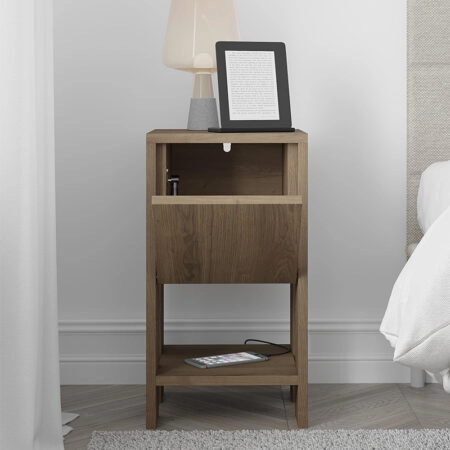 Κομοδίνο μελαμίνης Glynn χρώμα ανοιχτό καφέ 50,2×44,6×60εκ.