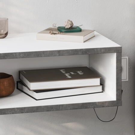 Κομοδίνο επιτοίχιο Brik Megapap με LED χρώμα λευκό – γκρι ρετρό 45x30x18εκ.
