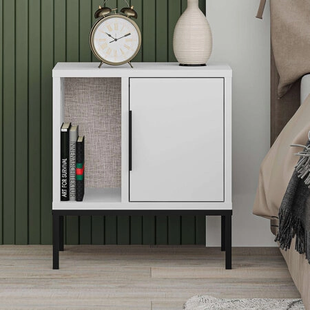 Κομοδίνο Glynn χρώμα λευκό 45x35x50εκ.