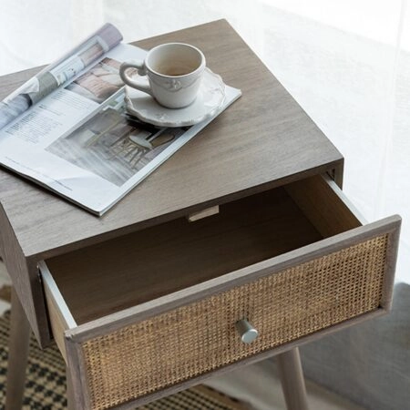 Κομοδίνο Υλικό: ΜΟΡΙΟΣΑΝΊΔΑ ΜΕ ΕΠΕΝΔΥΣΗ ΜΕΛΑΜΙΝΗΣ CARTA Χρώμα: ΦΥΣΙΚΟ ΜΕ RATTAN…