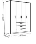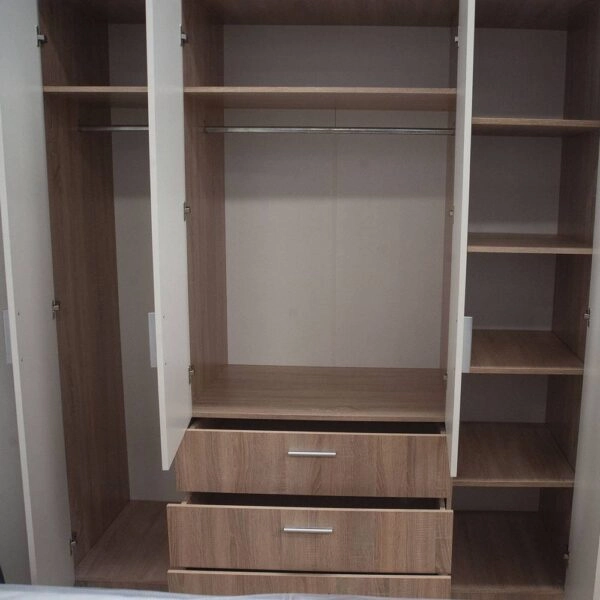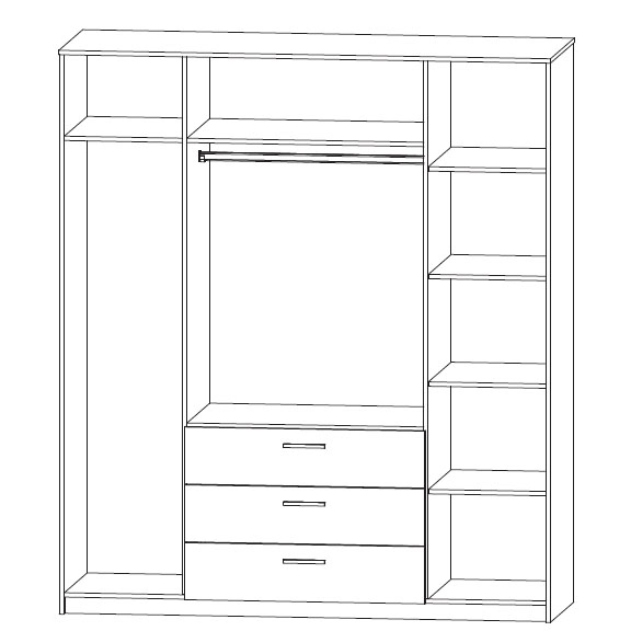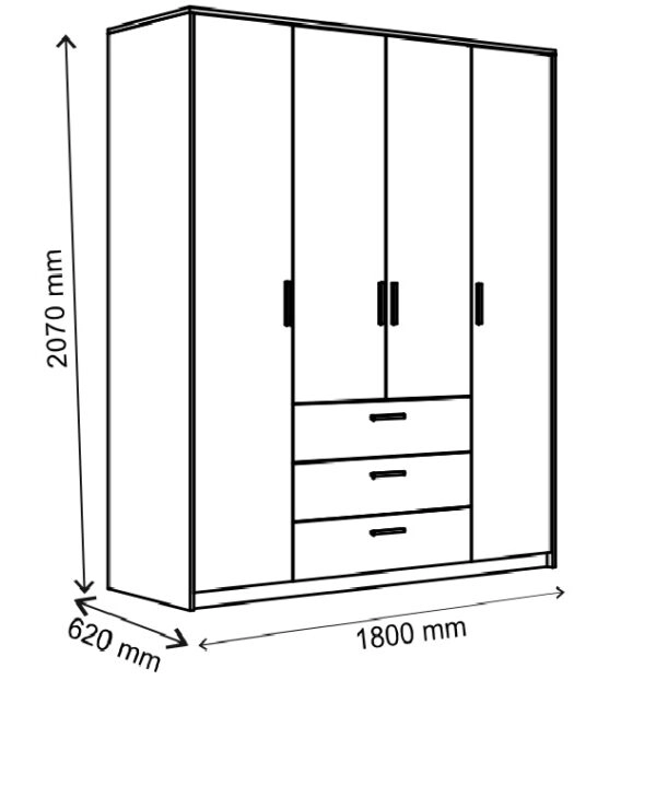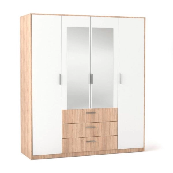 Ντουλάπα άριστης ποιότητας RICO με ευρύχωρους και πρακτικούς αποθηκευτικούς χώρους. Η τετράφυλλη ντουλάπα θα καλύψει όλες σας τις ανάγκες, 3 συρτάρια και καθρέπτη στις 2 ενδιάμεσες πόρτες. Με υψηλή ποιότητα κατασκευής και στιβαρή στήριξη.