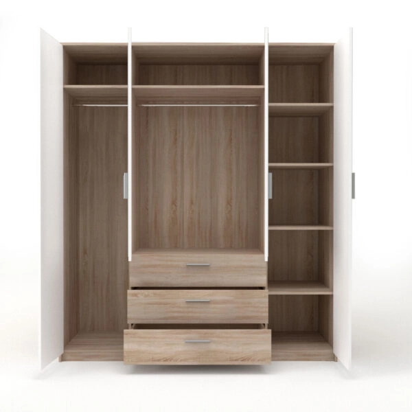 Ντουλάπα Τετράφυλλη Rico Λευκή-Sonoma 180x62x206cm