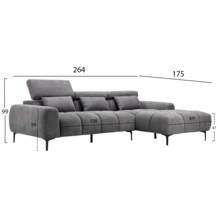 Καναπές Κρεβάτι Γωνιακός Αναστρέψιμος ArteLibre SOMERO Σκούρο Γκρι 286x144x84cm