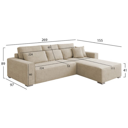 Καναπές Κρεβάτι Γωνιακός Αναστρέψιμος ArteLibre SOMERO Μπεζ 286x144x84cm