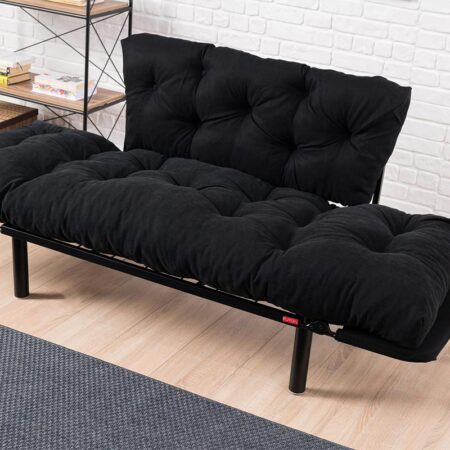 Καναπές κρεβάτι PWF-0018 2θέσιος με ύφασμα χρώμα μαύρο 155x73x85cm