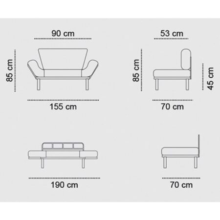 Καναπές-κρεβάτι Breathe ύφασμα ανθρακί 167x77x73εκ