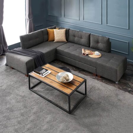 Γωνιακός καναπές – κρεβάτι Manama Megapap δεξιά γωνία υφασμάτινος χρώμα ανθρακί 280x206x85εκ.