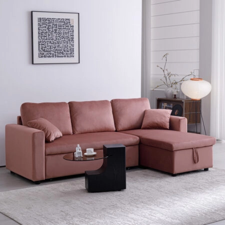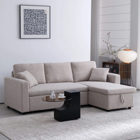 Triumph Γωνιακός Καναπές Κρεβάτι με Αναστρέψιμη Γωνία Μπεζ 241x147x94cm