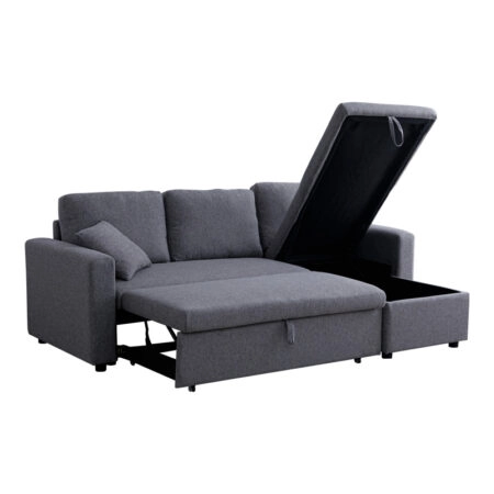 Γωνιακός καναπές – κρεβάτι Manama Megapap δεξιά γωνία υφασμάτινος χρώμα ανθρακί 280x206x85εκ.