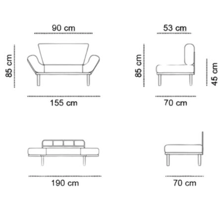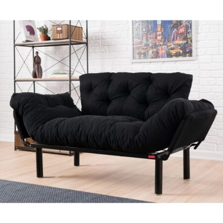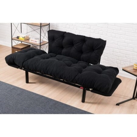 Καναπές – κρεβάτι Nitta Megapap διθέσιος υφασμάτινος χρώμα μαύρο 155x70x85εκ.