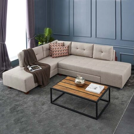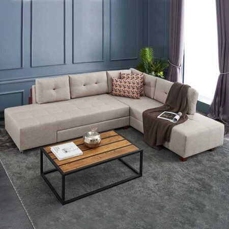 Silver Γωνιακός Καναπές Κρεβάτι με Αναστρέψιμη Γωνία Μπεζ 245x148x94cm